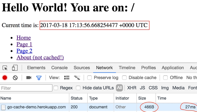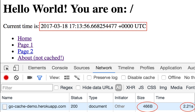 }Để dùng nó ta chỉ cần wrap HTTP handler bên trong cached như bên dưới. Nhờ thằng time package, mà chúng ta có thể sử dụng chuỗi để biểu diễn thời hạn một cách human hơn. Ví dụ, 10s dễ hiểu hơn là 10 * 1000. Trong ví dụ này chúng ta chỉ cache trang index.